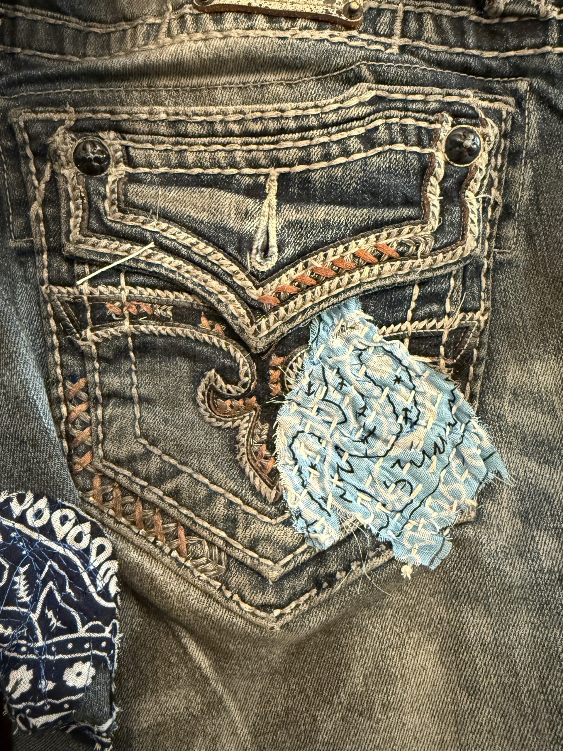 Hand stitched and embellished